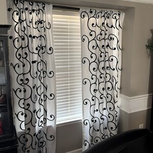 Add instant elegance to your space with this stunning pair of black and white swirl flocked drapes.