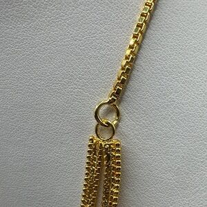 This stunning gold necklace and earring set adds a touch of elegance to any outfit. Perfect for special occasions. See pictures for best description