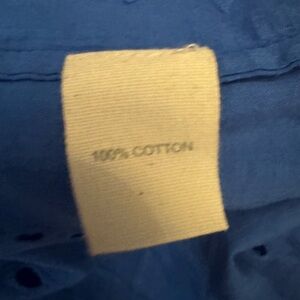 Blue eyelet blouse, this has large eyelet holes that are see through. Bought at Anthropologie- Forever That Girl brand, size Medium. Great quality, worn twice and washed twice. Pearl buttons. No flaws, smoke free home.