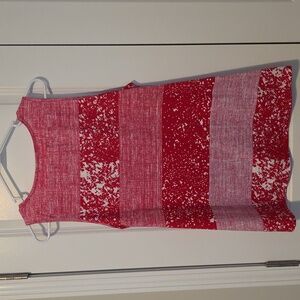 Chic red and white tank top with a stylish pattern. Features a V-neck and button detail. Perfect for casual wear.