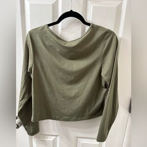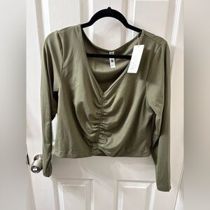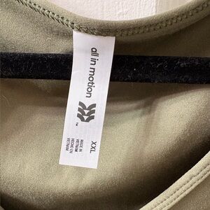 Adorable olive green workout top from All in Motion. It is size XXL but it is cropped and fits snugly, more like an XL. Never worn but from a pet friendly home