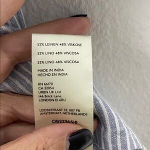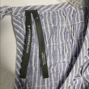 Anthropologie Blue Striped Linen Blend Puff Short Sleeve Textured Blouse Size XL