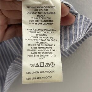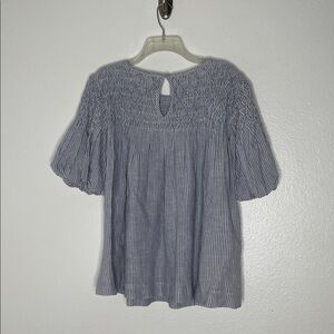 Anthropologie Blue Striped Linen Blend Puff Short Sleeve Textured Blouse