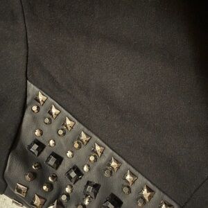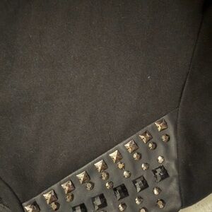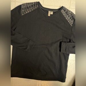 Stylish black long sleeve top with studded details on the shoulders. Perfect for a chic look.