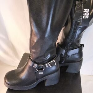 Elevate your wardrobe with Madden NYC's chic black heeled boots. These stylish boots offer a perfect blend of comfort and sophistication for any occasion.New with tags in box..goes with all attire