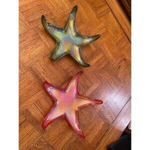 One of the starfish is a green iridescent and the other one is a coral iridescent