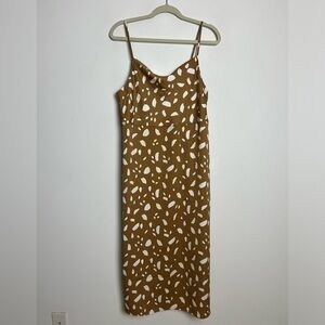 Old Navy Brown Cream Print Cowl Neck Satin Midi Slip Dress Size Medium