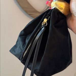 BILLINI LUCIA HANDLE BAG Knot Clutch Purse Vegan Suede Leather Black; NWOT