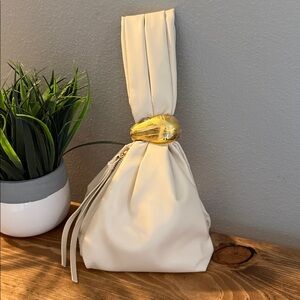 BILLINI LUCIA HANDLE BAG Knot Clutch Purse Vegan Leather Cream Handbag; NWOT