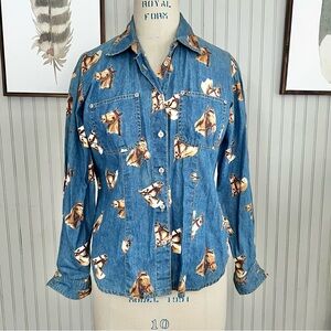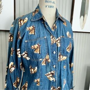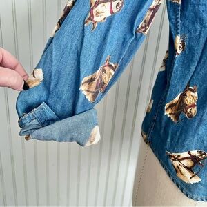 Vintage 90’s Western Denim Shirt Horse Head Design Equestrian Size Small