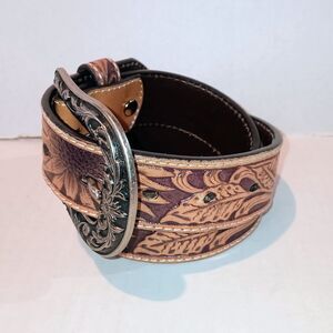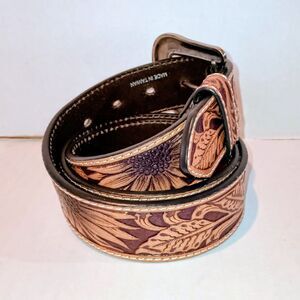 Nocona Belt Co Leather Sunflower Belt-Medium-Embossed-Interchangable Buckle-Tan