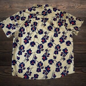 Hurley Mens XXL Floral Short Sleeve Button Down Shirt Tan Navy Hibiscus Print