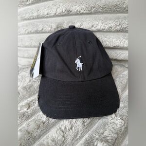 NWT Timeless and classic Polo logo chino baseball hat. Adjustable back. Black with white Polo logo.