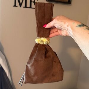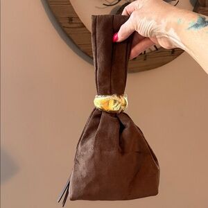 BILLINI LUCIA HANDLE BAG Knot Clutch Purse Vegan Suede Leather Brown; NWOT