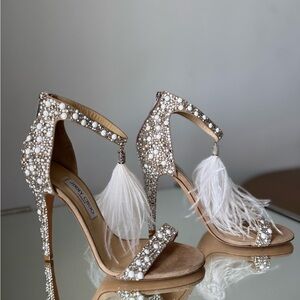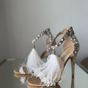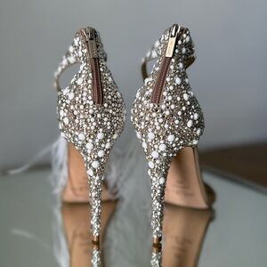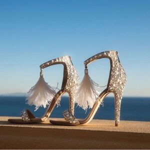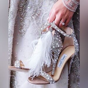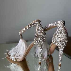 New Jimmy Choo Viola 110 Crystal Sandals Ostrich Feather Tassel Wedding $1,895