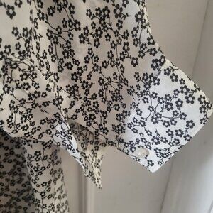 Elevate your [Business/Casual] wardrobe with this chic Alfred Sung blouse. Featuring a classic black and white ditsy floral pattern, this lightweight top is perfect for layering or wearing on its own.
