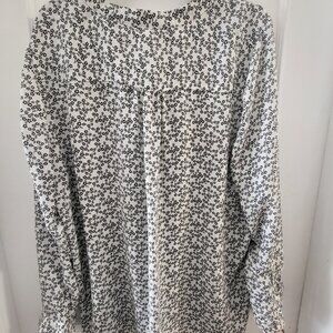 Alfred Sung Black & White Ditsy Floral V-Neck Blouse 2XL