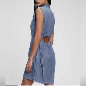 GAP Women's 100% Cotton Denim Utility Sleeveless Shirtdress