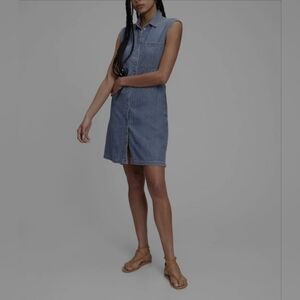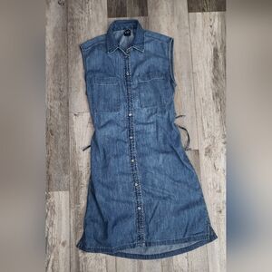 Gently used Women's 100% Cotton Gap Denim Utility Sleeveless Button Front Closure Shirtdress. Perfect for casual outings.
