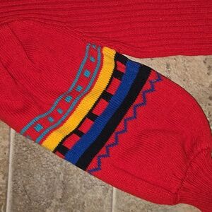 Vintage Red Sweater with Colorful Striped Bishop Sleeves Size M