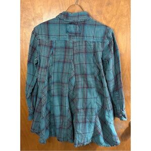 We The Free People Green Plaid Oversized Babydoll Button Up Shirt Shacket Boho