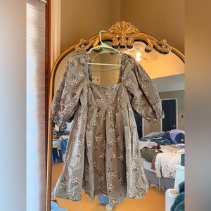 Altar'd State Gray Floral Puff Sleeve Dress