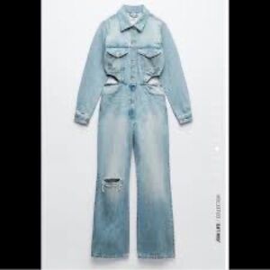 Zara Light Blue Women's Denim Overalls