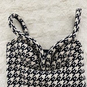 AREA NYC houndstooth tweed wool piping bustier mini dress NWT
