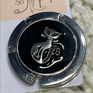 Silver Cat Folding Handbag Holder