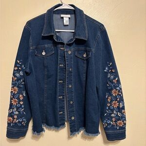 Alfred Dunner Embroidered Denim Jacket Women’s Large Floral Jean Jacket