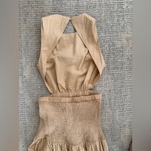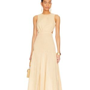 This elegant sleeveless dress is perfect for any occasion. Its timeless design and soft color make it a versatile addition to your wardrobe. Still available on Revolve, and very high quality. Never worn, perfect condition.