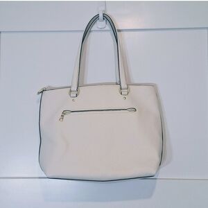 Coach Pebbled Leather Bay Tote Bag Used Once White Gold Hardware F48637 Zip Top