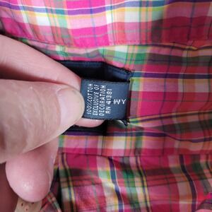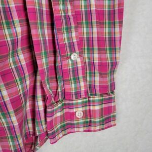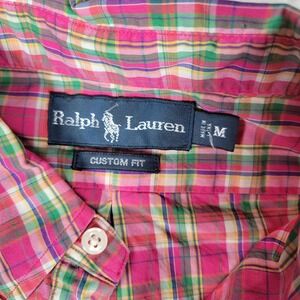 Ralph Lauren Mens Custom Fit Plaid Button Down Shirt Pink Green Cotton Medium