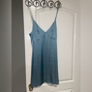New! Secret Mission Erica Slip 100% Silk Mini Dress in Dusty Blue 🩵 Medium NWT!