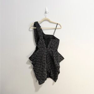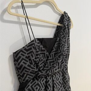 Alexander McQueen For Target Black And Grey One-Shoulder Geometric Silk Dress