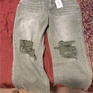 Trendy distressed jeans in a stylish sage color. Ideal for casual wear.