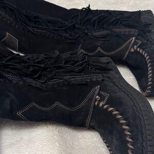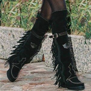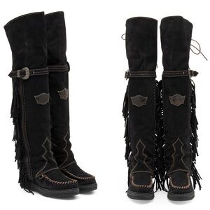 El Vaquero Coleen Silverstone Carbon Fringe Suede Boots - 39