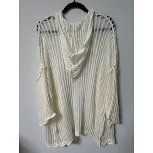 POL Womens Cream Open Knit Hooded Cardigan Sweater Large Boho Bell Sleeve