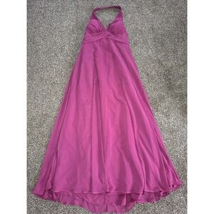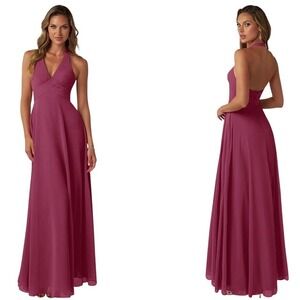 Azazie Tessie Mulberry Chiffon A-Line V-Neck Pleated Halter Gown Dress A16