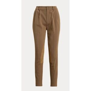 The LAUREN Ralph Lauren® Pleated Bi-Stretch Jodhpur Pant features equestrian-inspired suede knee patches and crisp pleats.