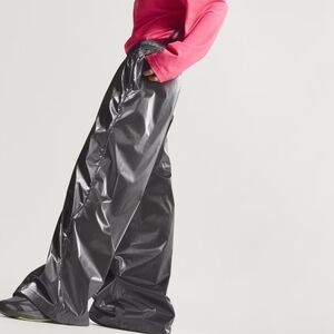 Sleek and shiny track pants. Elastic waistband for comfort. Perfect for casual wear.