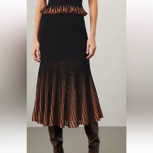 Black knit ombres into contrasting stripes for a flirty flared design that was made for the dance floor. Style this unique maxi skirt by Ulla Johnson with a mesh top for a silhouette hugging OOTD.