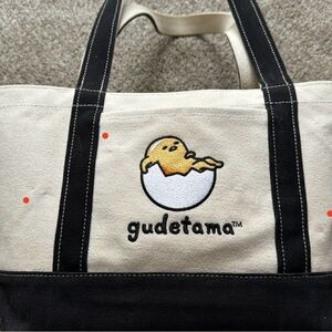 Stylish BAGGU tote featuring Gudetama design in good condition a few pin wholes and one dust stain on the back that will most likely come out with a wash besides that the bag it sturdy still! (the second and third picture show the pin marks and dust stain)