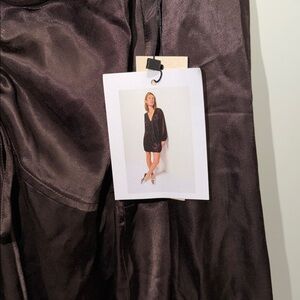 Nation LTD Cora Coffee Brown Satin Ruched Mini Dress Long Sleeve NWT M
