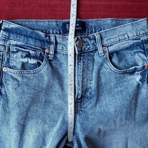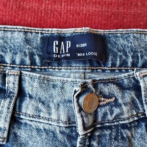 Gap 90's loose straight jeans. High rise style. These look really cute with sandals and a tshirt for a casual look. Light wash