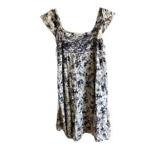 Blu Pepper Linen Mini Dress Size S Blue White Floral Flutter Sleeve Boho Spring