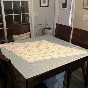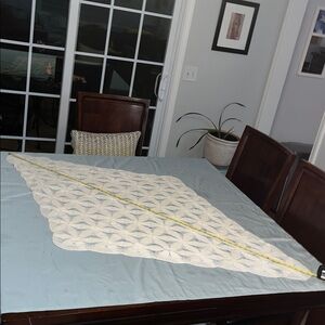 Beautiful white crochet table runner with intricate patterns. Perfect for adding a touch of elegance to any table setting. Very good vintage condition.