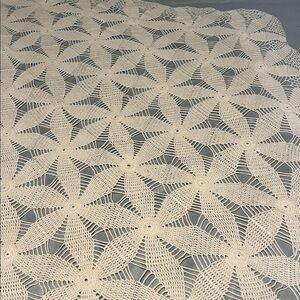 Vintage Hand-Crochet Lace Large Table Runner Hexagon Motifs