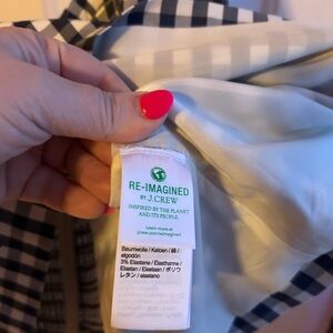 New with tags J.Crew gingham top in size Large from the Re-Imagined collection. Classic blue and white check print with wide ruffle straps and a flattering smocked back panel for stretch and comfort.