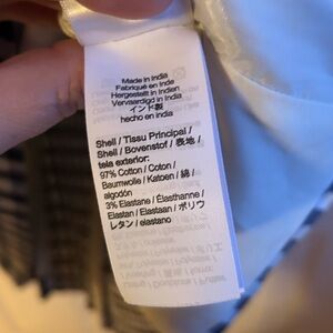 Structured bodice with back zipper closure. Fully lined. Slight stretch fabric (97% cotton, 3% elastane) for a comfortable, tailored fit.